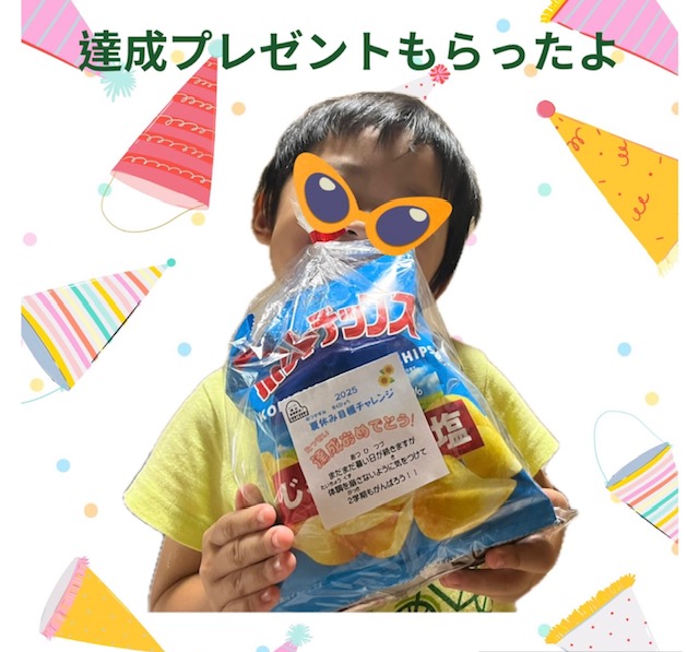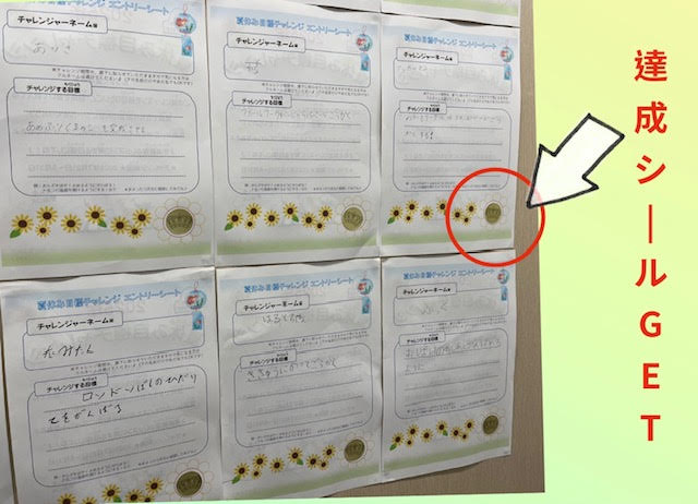 そして目標達成した生徒さんは先生からもらった達成シールをエントリーシートに貼り、9月上旬にプレゼントをもらいました♪