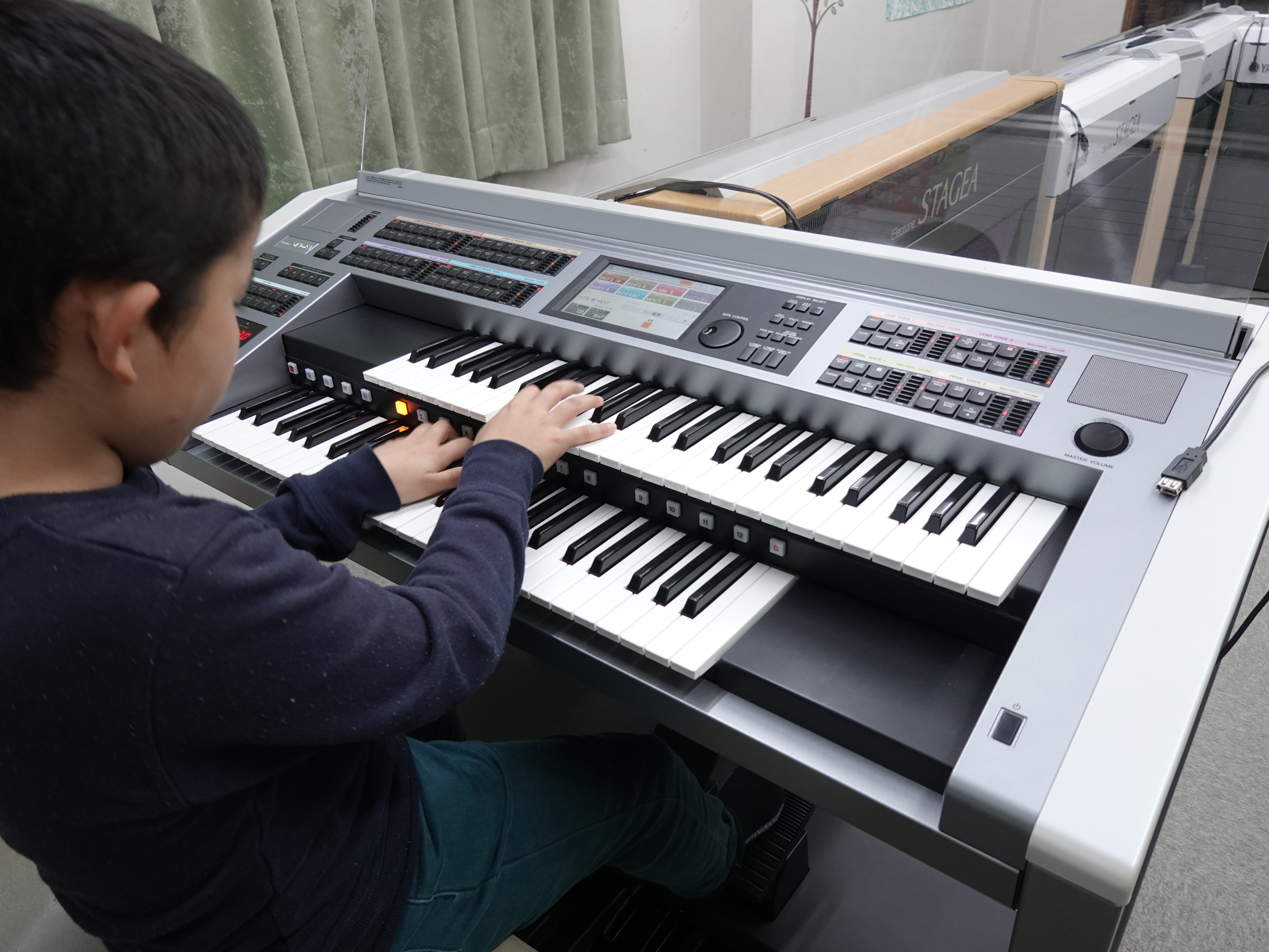 様々な楽器の音色が出るエレクトーン「STAGEA(ステージア)」を使ってレッスンします。